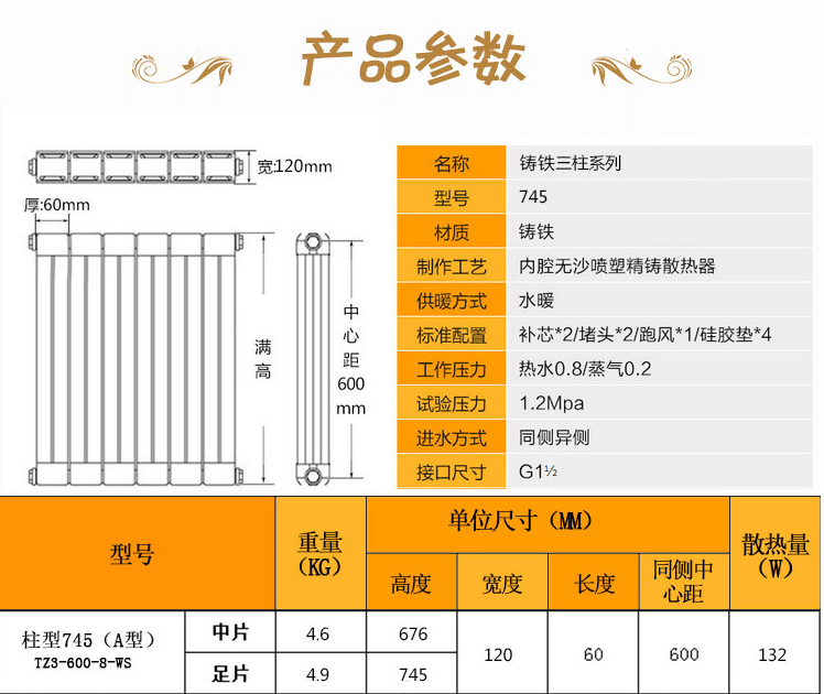 橢三柱745,橢三柱745暖氣片,北鑄橢三柱745暖氣片找山西省清徐縣北鑄暖氣片有限公司專注生產暖氣片,工程暖氣片,鑄鐵暖氣片,是一個集科研、鑄造、加工、銷售為一體的工程暖氣片廠家